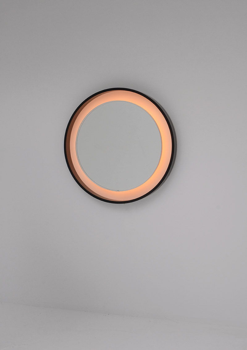 Large decorative plywood backlit mirror with a diameter of 90 cm. Inside a built-in lighting system. Very large, very decorative !!!