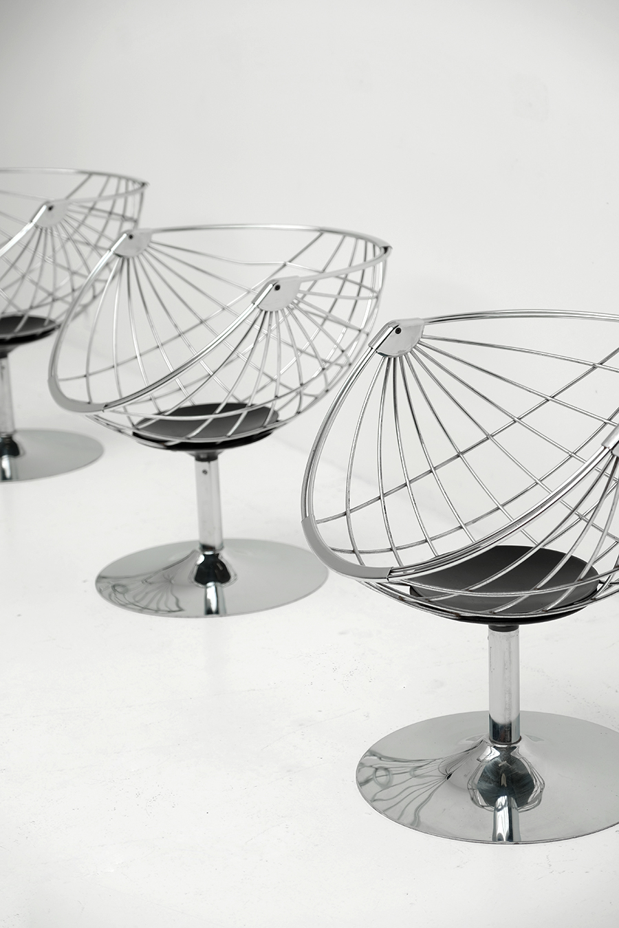 From 1966 Rudy Verelst started working as an independent industrial designer for the companies Novalux, Tomado Belgium and Dumont-Wyckhuyse. He worked together in collaboration with industrial designer W. Gilles, director of the Academy for Industrial Design in Eindhoven. These chairs where produced for Novalux in 1974. The chairs are in a nice original condition. The original cushions are missing but can be custom made by Sophie from Cover&Couch on request.