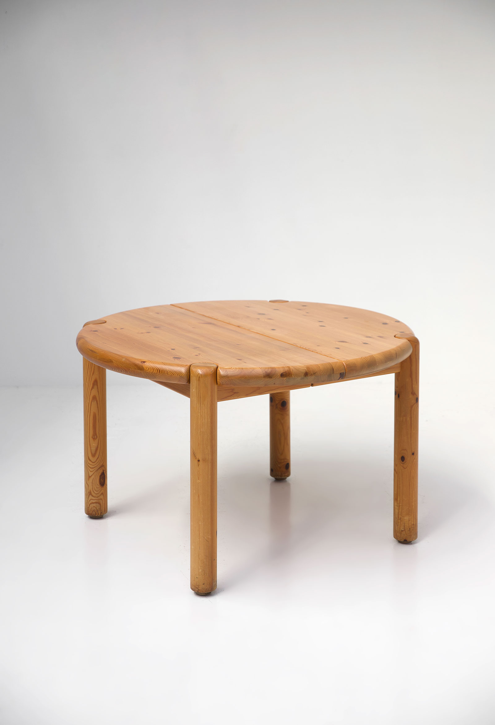 Extendable dining table designed by Swedish designer Rainer Daumiller and manufactured by Hirtshals Sawmill in Denmark, circa 1970. The table is made in the highest quality solid pinewood and has gained a nice honey colored patina through the years. The table comes with two extension leafs of each 50 cm.