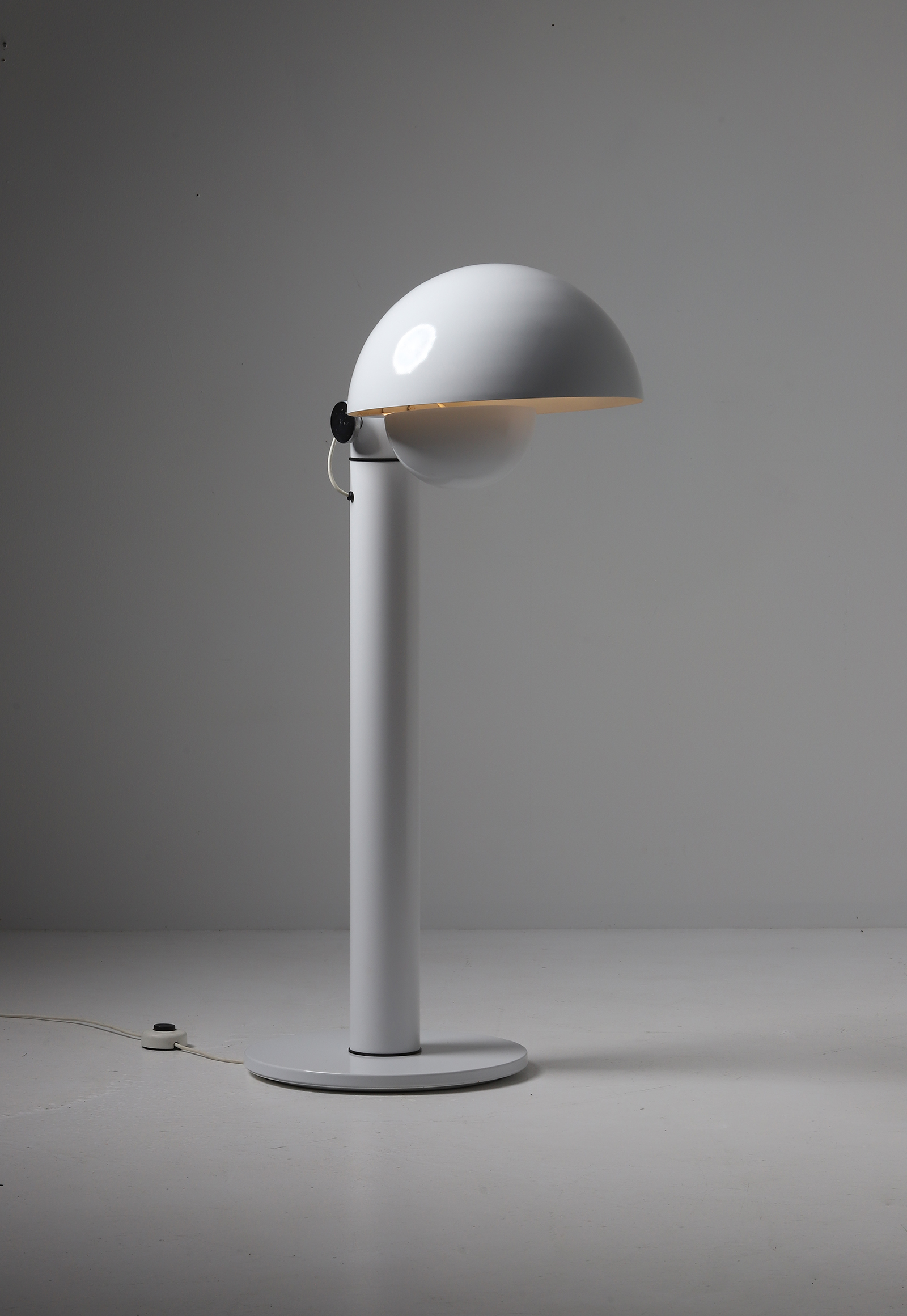Cuffia floor lamp designed by Francesco Buzzi for Bieffeplast in 1969. This postmodern lamp is made out of a white lacquered aluminum with two adjustable shades who can turn 180 degrees. The use of the two shades gives the lamp a highly decorative touch. The lamp stands in an very good condition.