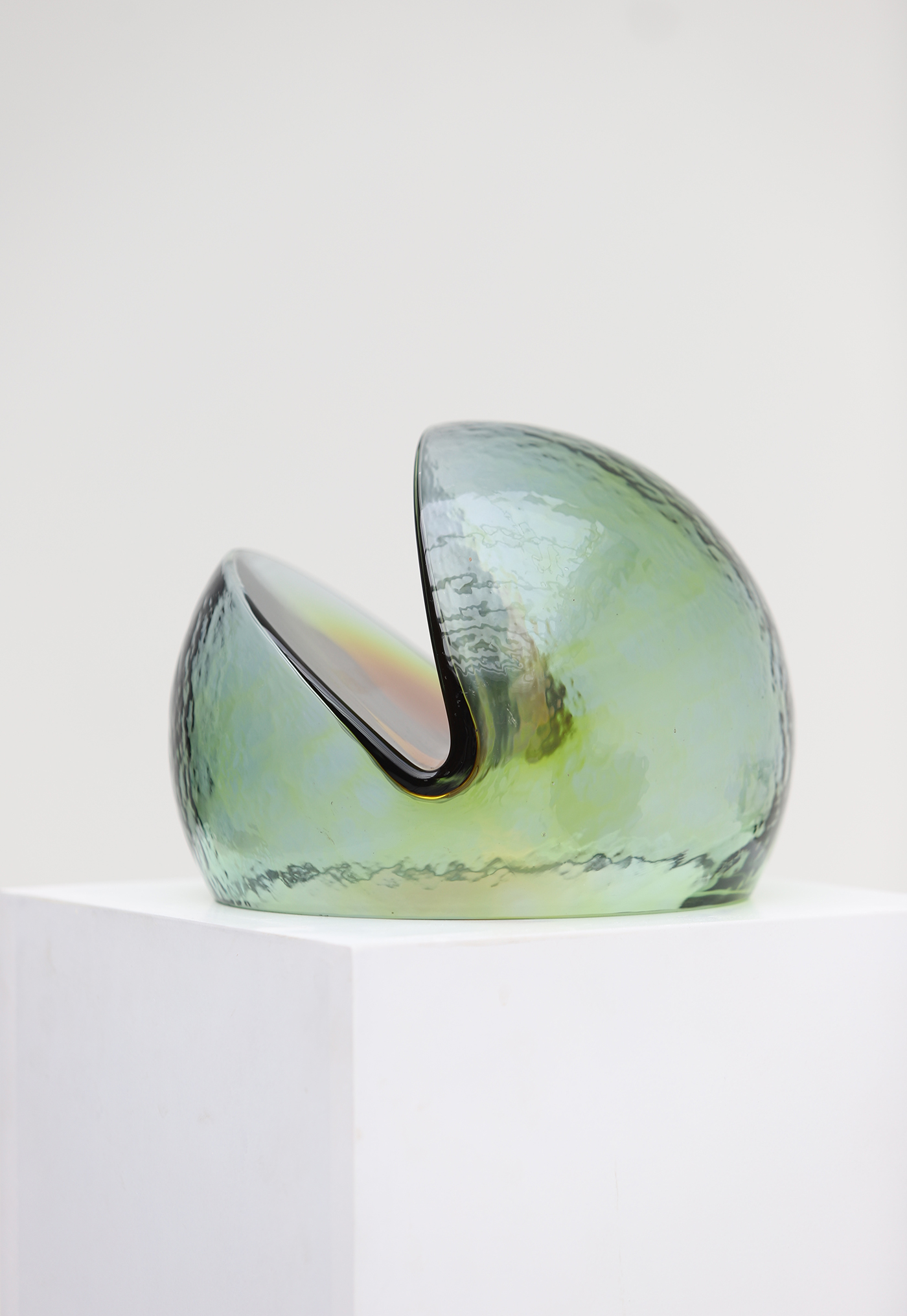 Rare large abstract glass sculpture by Toni Zuccheri for VeArt, 1970s Italy. The sculpture was originally intended as a desk object (paper holder, correspondence holder or magazine rack) and was created in different colors and size variations. As far as we know this is the larges verion. Hand blown glass with vibrant yellow and orange colors. The VeArt brand no longer exists, the company was absorbed in the 1990s by Artemide. In very good vintage condition.