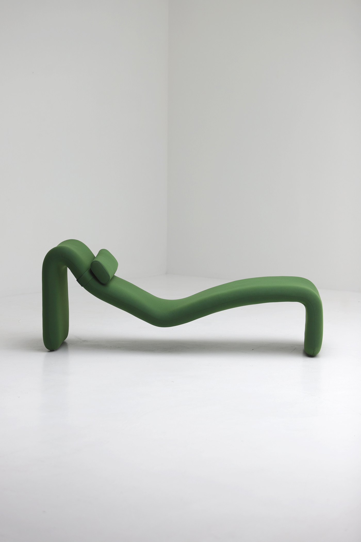 The foam padding and nylon jersey of this lounge chair has been completely replaced. All done with an eye for detail by Cover & Couch here in Antwerp. I decided to keep it original as possible and did choose for a green Planum Kvadrat fabric. Planum is a double knitted upholstery textile with a refined woven expression and a smooth, soft surface crafted by dutch design Studio Raw. Standing in a perfect condition!