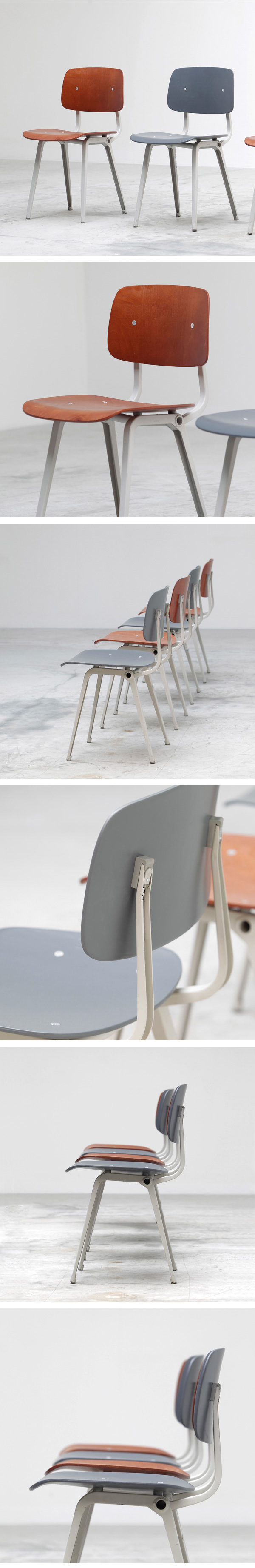 Revolt Chairs, designed by Friso Kramer for Ahrend / de Cirkel. Thist imeless design won a permanent place for itself both in the business world and in Dutch living rooms. The name of the chair comes from revolution, because of the whole new concept to manufacture a chair from folded metal. In 1954 the chair was highly appraised at the Triennale in Milan and received a Signe D'Or.
