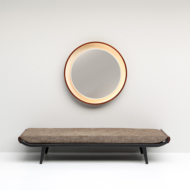 Daybed Cleopatra designed by Dick Cordemeijer for Auping. Cordemeijer day bed is not just a piece of furniture, it is a work of art, a symphony of art and convenience, which provides utmost relaxation on a quiet afternoon. Coverings are made of a brand new foam and upholstery. Black colored metal daybed finished on both ends with natural wood.
