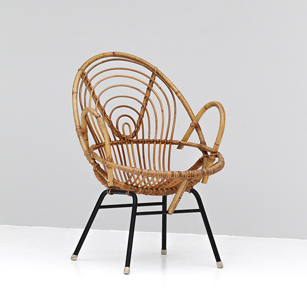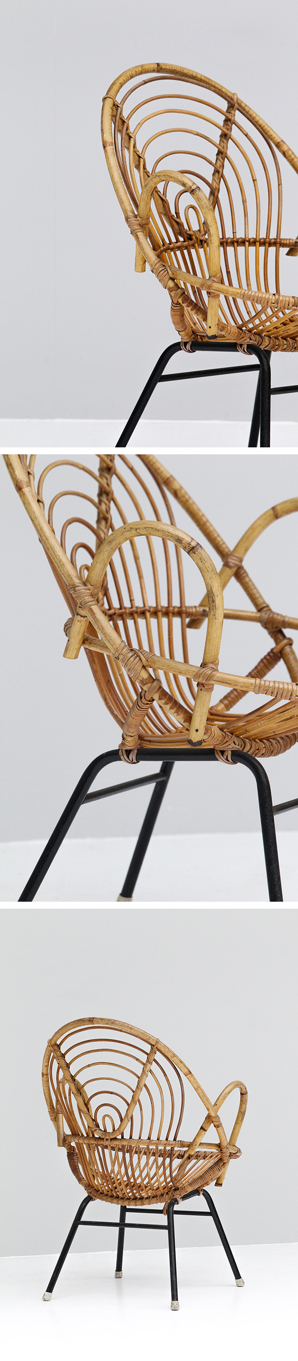Rattan Armchair circa 1960. In fine original condition, preserving a beautiful patina.